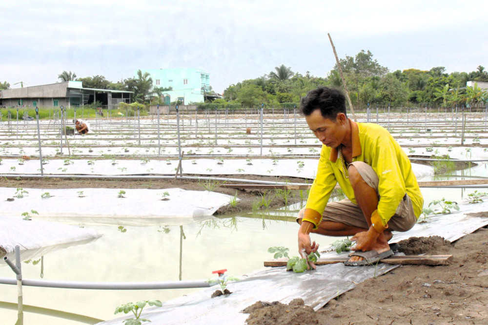 Anh Hồ Văn Đức (ấp Lộc Trung, xã Mỹ Lộc, huyện Cần Giuộc) gắn bó với nghề trồng dưa hấu hơn 20 năm qua. Với diện tích canh tác 1,3ha, mỗi năm, anh trồng một vụ dưa hấu vào dịp cuối năm, các tháng còn lại thì luân canh các loại rau màu như cải xanh, cải ngọt,...