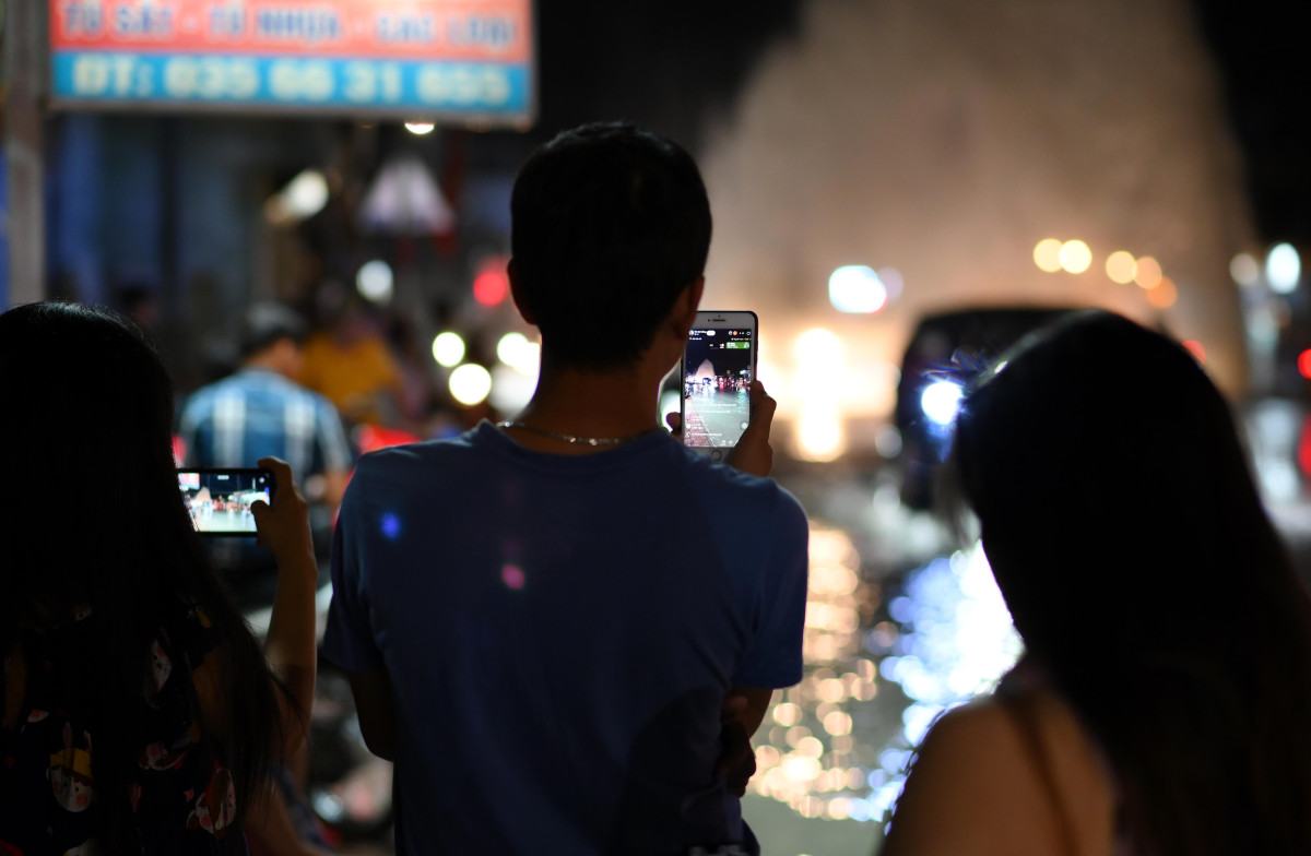 Nhiều người dân lưu lại khoảng khắc sự cố hiếm gặp này (Ảnh: Võ Thành Nguyễn)