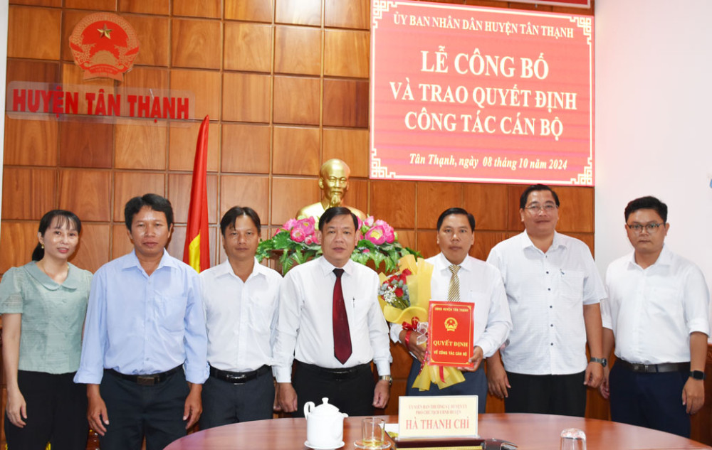 Ngày 08/10, UBND huyện Tân Thạnh, tỉnh Long An tổ chức Lễ công bố quyết định công tác cán bộ. Phó Chủ tịch UBND huyện Tân Thạnh - Hà Thanh Chì chủ trì và trao quyết định.