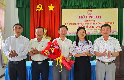 Sáng 28/11, UBMTTQ Việt Nam xã Tân Châu, tỉnh Tây Ninh, tổ chức hội nghị lần thứ II (hội nghị bất thường) để bầu bổ sung chức danh Chủ tịch UBMTTQ Việt Nam xã, nhiệm kỳ 2025-2030. Đến dự có Phó Bí thư Thường trực Đảng ủy xã Vũ Thế Cường. Phó Chủ tịch Thường trực UBMTTQ Việt Nam xã Nguyễn Thị Thúy Hằng và các Phó Chủ tịch chủ trì hội nghị.