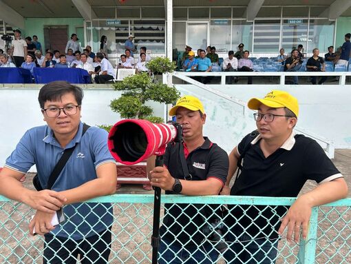 Phóng viên Huỳnh Du (giữa) tác nghiệp