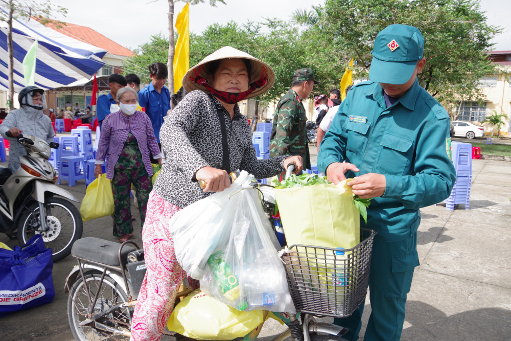 Từ sáng sớm, người dân thị xã Kiến Tường và huyện Mộc Hóa, tỉnh Long An có mặt khá đông để tham gia Phiên chợ nghĩa tình quân - dân do Bộ Chỉ huy Quân sự (CHQS) tỉnh tổ chức. Ai cũng hân hoan, háo hức đi phiên chợ đặc biệt này - phiên chợ thấm đượm nghĩa tình quân - dân.