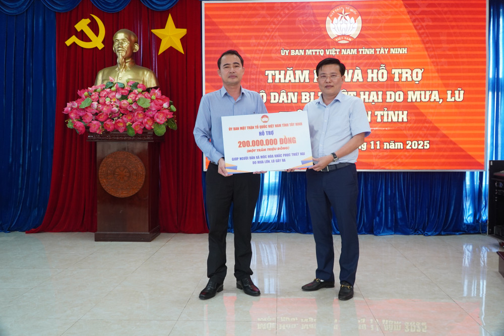 Ngày 14/11, Phó Bí thư Tỉnh ủy, Chủ tịch UBMTTQ Việt Nam tỉnh Tây Ninh Nguyễn Thanh Hải cùng lãnh đạo xã Bình Hiệp, xã Mộc Hóa đến thăm hỏi, động viên các hộ dân bị thiệt hại nặng do mưa lớn, lũ gây ra.