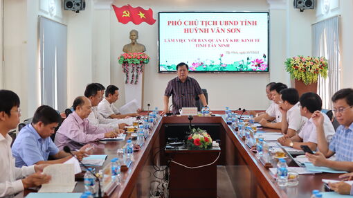 Ngày 29/7, Phó Chủ tịch UBND tỉnh Tây Ninh Huỳnh Văn Sơn có buổi làm việc với Ban Quản lý Khu kinh tế tỉnh về tình hình hoạt động, kết quả thực hiện nhiệm vụ 6 tháng đầu năm và phương hướng nhiệm vụ 6 tháng cuối năm 2025.