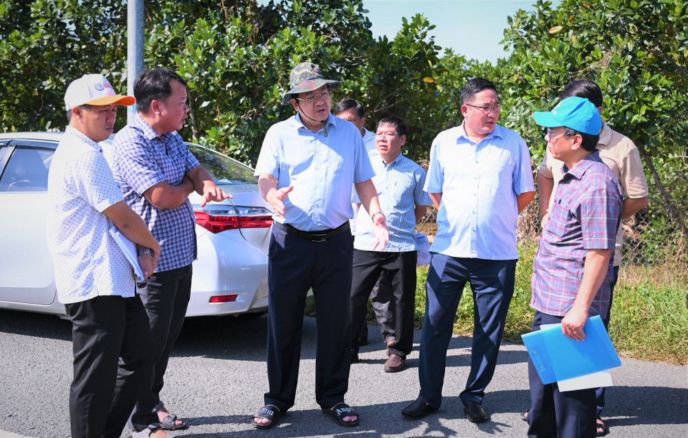 Phó Chủ tịch UBND tỉnh Nguyễn Minh Lâm kiểm tra điểm hư hỏng trên đường Vành đai TP.Tân An