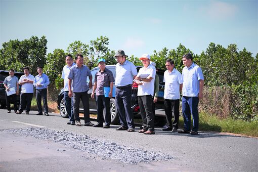 - Phó Chủ tịch UBND tỉnh Nguyễn Minh Lâm kiểm tra điểm hư hỏng trên đường Vành đai TP.Tân An