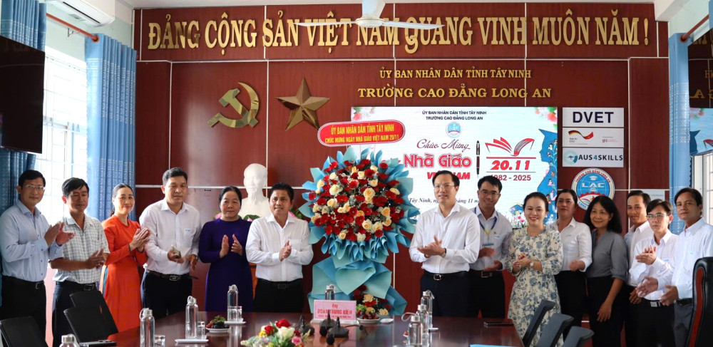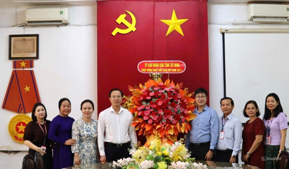Sáng 19/11, Đoàn công tác do Ủy viên Ban Thường vụ Tỉnh ủy, Phó Chủ tịch UBND tỉnh Tây Ninh Đoàn Trung Kiên làm Trưởng đoàn đến thăm và chúc mừng các trường Đại học, Cao đẳng, THPT trên địa bàn tỉnh, nhân kỷ niệm 43 năm Ngày Nhà giáo Việt Nam (20/11/1982 - 20/11/2025). Cùng đi có Phó Giám đốc Sở Giáo dục và Đào tạo Phan Thị Dạ Thảo.
