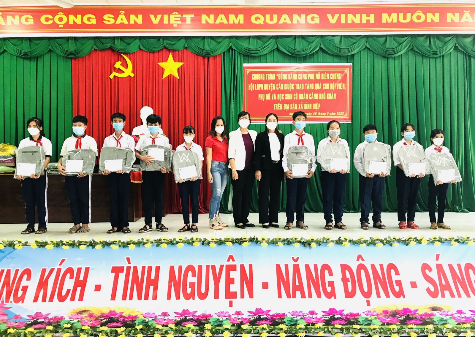 Hội Liên hiệp Phụ nữ Việt Nam huyện Cần Giuộc, tỉnh Long An tổ chức thăm và tặng quà cho phụ nữ nghèo, trẻ em có hoàn cảnh khó khăn tại 2 xã biên giới Bình Hiệp, Thạnh Trị, thị xã Kiến Tường.