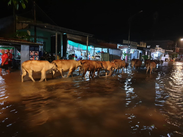 Lúc 23h20 đêm 08/8, phóng viên Tuổi Trẻ tại huyện đảo Phú Quốc (Kiên Giang) cho biết mưa đã ngớt hạt nhưng nước từ phía rừng theo các con suối vẫn ồ ạt đổ về các khu dân cư xã Dương Tơ, Cửa Dương và thị trấn Dương Đông.