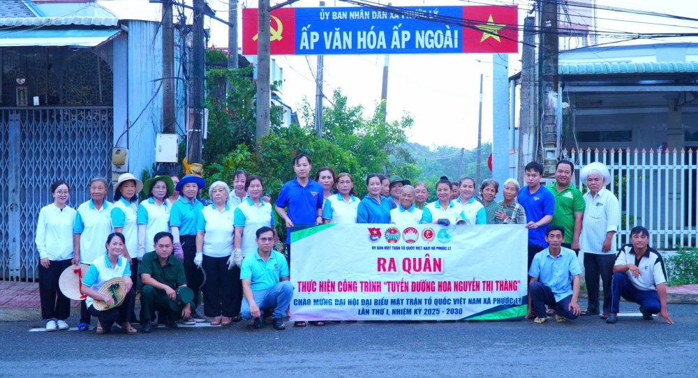 Lập thành tích chào mừng Đại hội đại biểu MTTQ Việt Nam xã Phước Lý, tỉnh Tây Ninh lần thứ I, nhiệm kỳ 2025-2030, UBMTTQ Việt Nam xã Phước Lý tổ chức ra quân thực hiện công trình “Tuyến đường hoa Nguyễn Thị Thàng”.