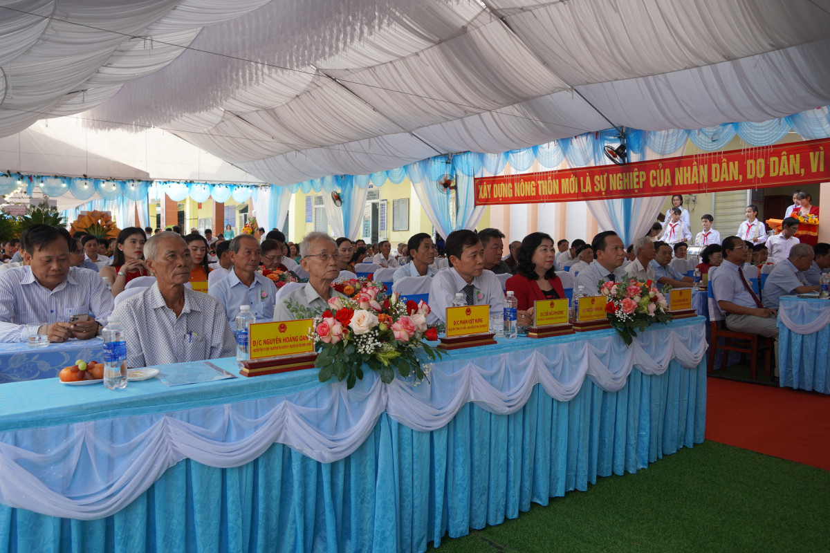 Lãnh đạo xã Phước Vĩnh Tây nhận quyết định, bằng công nhận, bảng tượng trưng tiền thưởng và hoa chúc mừng từ lãnh đạo tỉnh, huyện