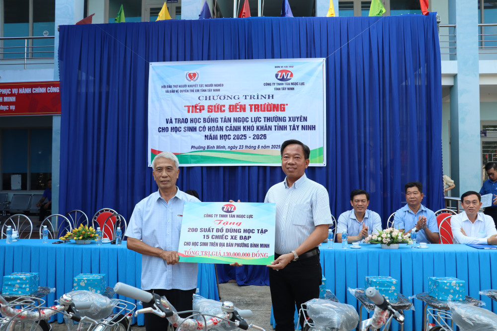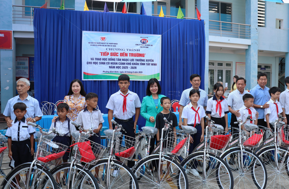 Sáng 23/8, UBND phường Bình Minh phối hợp Hội Bảo trợ người khuyết tật, người nghèo và bảo vệ quyền trẻ em tỉnh tổ chức chương trình Tiếp sức đến trường nhằm hỗ trợ dụng cụ học tập cho học sinh có hoàn cảnh khó khăn trước thềm năm học mới 2025 - 2026.