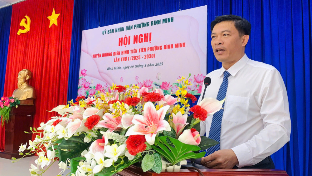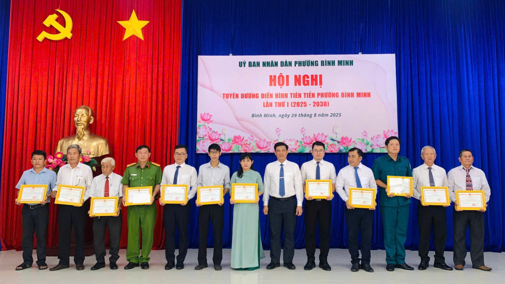 Chiều 29/8, UBND phường Bình Minh, tỉnh Tây Ninh tổ chức Hội nghị tuyên dương điển hình tiên tiến phường Bình Minh lần thứ I, giai đoạn 2025–2030. Đến dự có Bí thư Đảng ủy, Chủ tịch HĐND phường Võ Hồng Sang; Phó Bí thư Đảng ủy, Chủ tịch UBND phường Lương Bá Can.