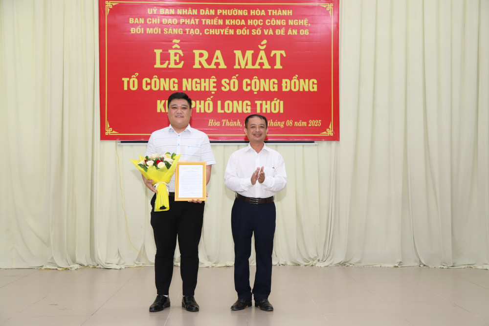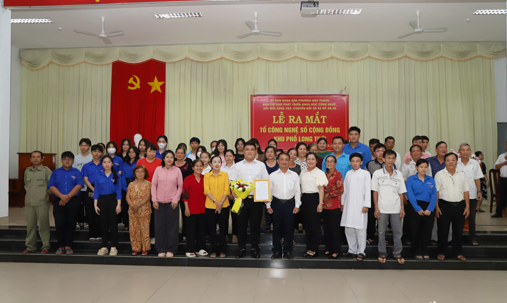 Chiều 29/8, phường Hòa Thành, tỉnh Tây Ninh tổ chức ra mắt Tổ công nghệ số cộng đồng khu phố Long Thới. Đến dự có Chủ tịch UBND phường Nguyễn Đức Hảo cùng lãnh đạo ban, ngành và hơn 270 người dân trên địa bàn khu phố Long Thới.