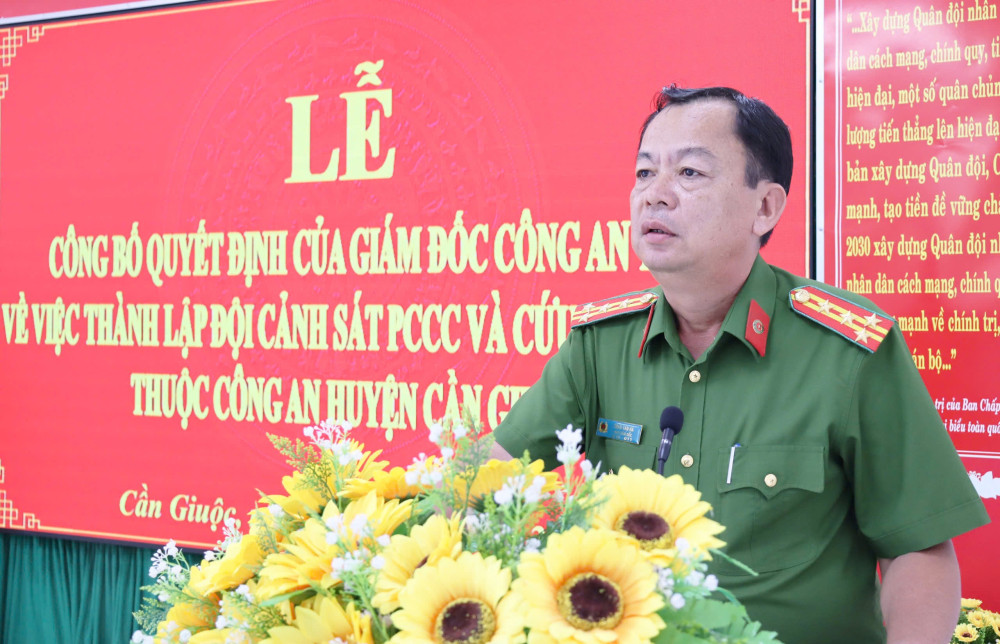 Phát biểu tại buổi lễ, Đại tá Trần Văn Hà - Phó Giám đốc Công an tỉnh, đề nghị, cán bộ Đội Cảnh sát PCCC&CNCH thuộc Công an huyện Cần Giuộc phát huy trí tuệ, tinh thần trách nhiệm với công việc, không ngừng nỗ lực, nhanh chóng hòa nhập để cùng Công an huyện Cần Giuộc hoàn thành thắng lợi nhiệm vụ bảo đảm an ninh, trật tự tại địa phương.