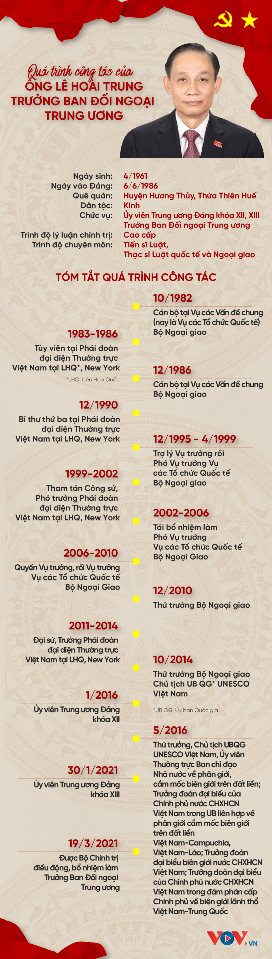 Trước khi được phân công giữ chức Trưởng Ban Đối ngoại Trung ương, ông Lê Hoài Trung là Thứ trưởng Bộ Ngoại giao.