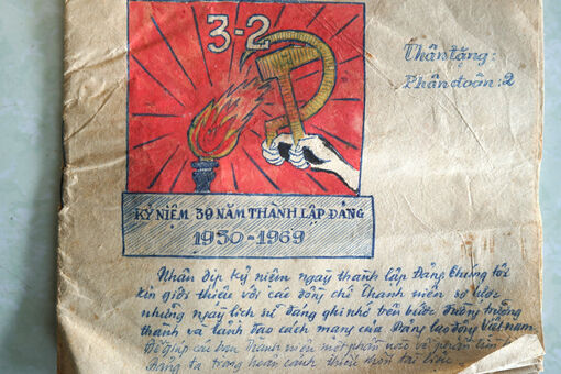 Các loại giấy tờ bên trong thùng đạn cũng đã ngả sang màu vàng và bị nhiều nếp gấp. Trong đó, có một số tài liệu đáng chú ý như quyển sổ tay với kích thước cỡ bàn tay người lớn. Bên ngoài quyển sổ vẽ trang trí hình ngọn đuốc cháy sáng, cờ búa liềm, số 3-2 trên nền đỏ và dòng chữ in với nội dung: “Kỷ niệm 39 năm thành lập Đảng 1930-1969”. Bên góc phải quyển sổ có dòng chữ nắn nót: "Thân tặng: Phân đoàn: 2".