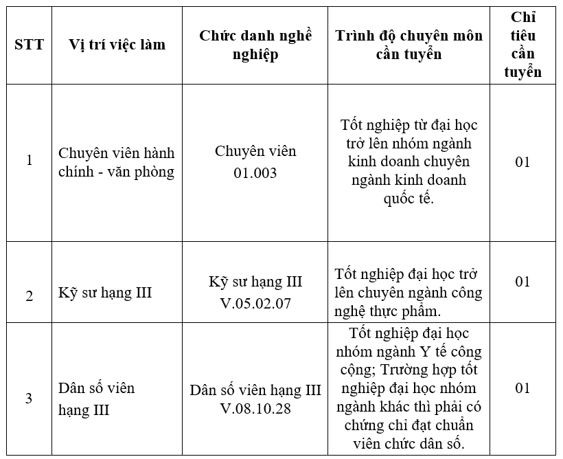 Tổng số chỉ tiêu tuyển dụng viên chức đợt 1 năm 2025 là 03 chỉ tiêu, gồm: