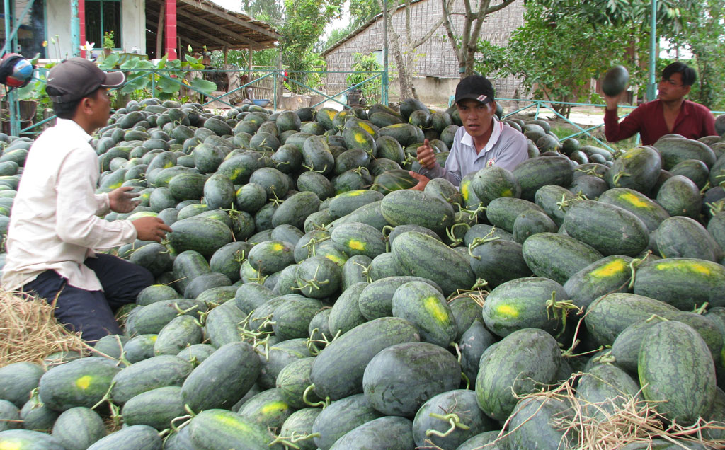 Sau Tết Nguyên đán 2017, giá dưa hấu giảm mạnh, nông dân trồng dưa hấu trên địa bàn tỉnh Long An không có lợi nhuận nhiều thậm chí thu lỗ.