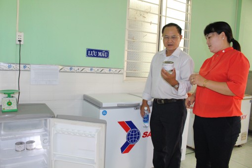 Trường Tiểu học Khánh Hưng (xã Khánh Hưng, huyện Vĩnh Hưng) cũng là đơn vị được chọn làm điểm triển khai mô hình ATTP đối với loại hình bếp ăn tập thể trong trường học. Theo ghi nhận của phóng viên, khu vực bếp ăn của trường bảo đảm hợp vệ sinh, trang bị đầy đủ tủ lưu mẫu thức ăn. Được biết, các loại thực phẩm tươi sống được nhập theo ngày vào đầu giờ sáng, có sự kiểm soát chặt chẽ. Thực phẩm khô thì nhập hàng tuần.