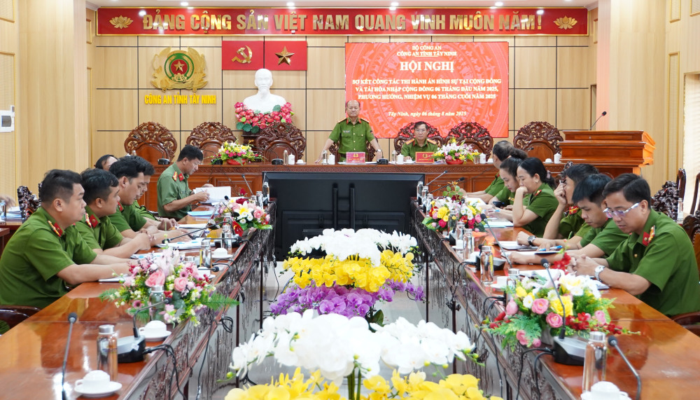 Ngày 06/8, Công an tỉnh Tây Ninh tổ chức Hội nghị sơ kết công tác thi hành án hình sự (THAHS) tại cộng đồng và tái hòa nhập cộng đồng (THNCĐ) 6 tháng đầu năm 2025; phương hướng, nhiệm vụ 6 tháng cuối năm 2025. Hội nghị được tổ chức trực tuyến đến Công an cấp xã.