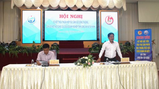Ngày 18/6, Sở Công Thương Long An phối hợp Sở Công Thương Tây Ninh tổ chức hội nghị sơ kết thỏa thuận hợp tác phát triển công thương giữa 2 tỉnh giai đoạn 2019 - 2023, gắn với kết nối xúc tiến tiêu thụ sản phẩm hàng hóa giữa doanh nghiệp 2 tỉnh.
