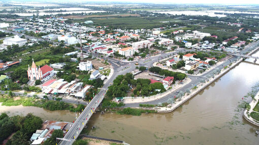 Một góc thị trấn Tân Thạnh, huyện Tân Thạnh nhìn từ trên cao (Ảnh: kim ngọc)
