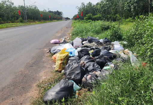 Tái diễn tình trạng vứt rác thải sinh hoạt ven Quốc lộ 22B