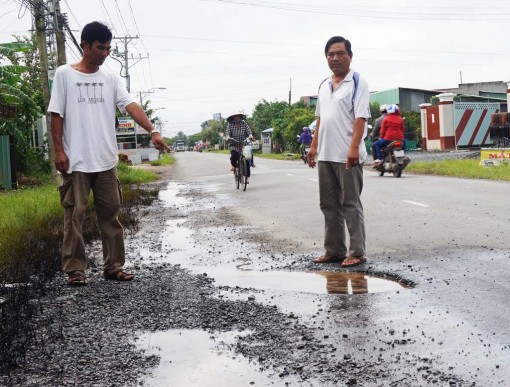 Anh Nguyễn Thanh Phong, sửa xe môtô khu vực ngã ba Cai Tài, QL1 thuộc xã Nhị Thành, huyện Thủ Thừa, cho biết: "Những ngày mưa lớn, nhiều người chạy xe môtô “lội nước” bị sụp “ổ gà”, té ngã. Nước đọng thành vũng kéo dài 2 bên lề đường, vào giờ cao điểm, xe môtô, xe máy buộc phải chạy lấn vào làn xe ôtô, nguy cơ xảy ra TNGT".