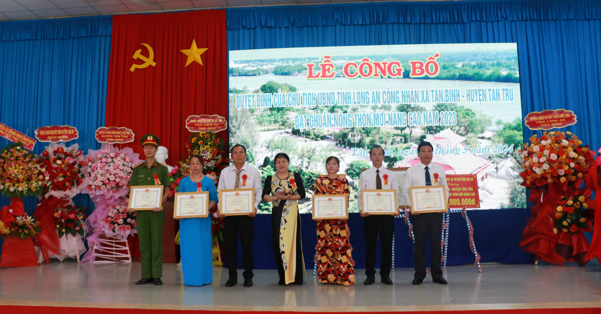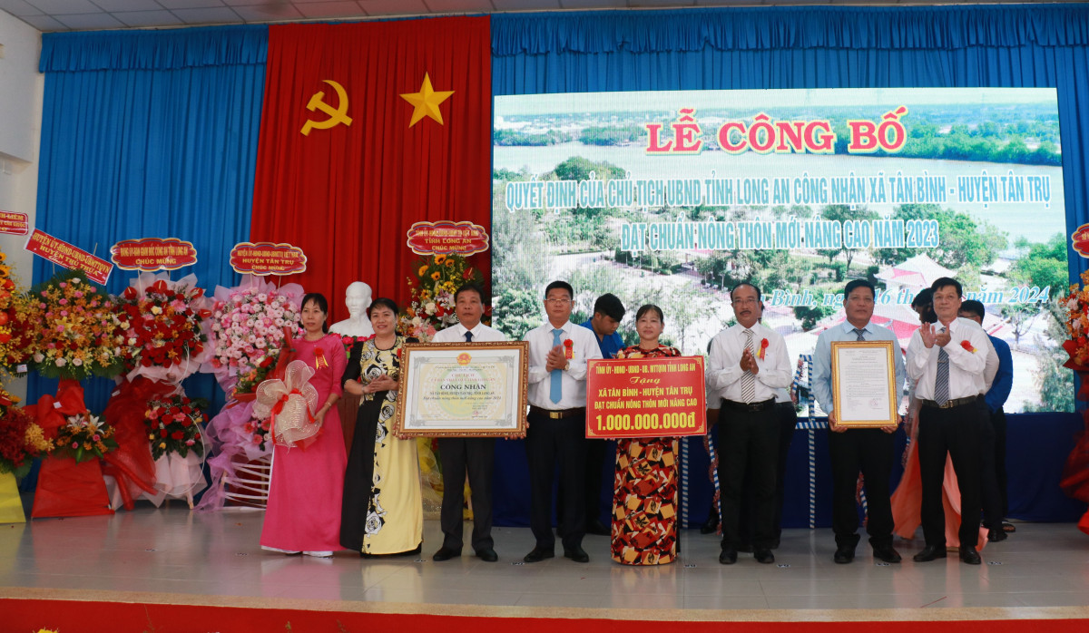 Sáng 16/5, huyện Tân Trụ tổ chức Lễ công bố Quyết định của Chủ tịch UBND tỉnh Long An công nhận xã Tân Bình đạt chuẩn nông thôn mới (NTM) nâng cao năm 2023.