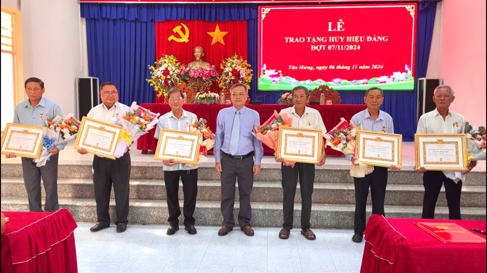 Ngày 06/11, Huyện ủy Tân Hưng, tỉnh Long An tổ chức Lễ trao tặng Huy hiệu Đảng nhân kỷ niệm 107 năm Cách mạng Tháng Mười Nga (07/11/1917 - 07/11/2024).