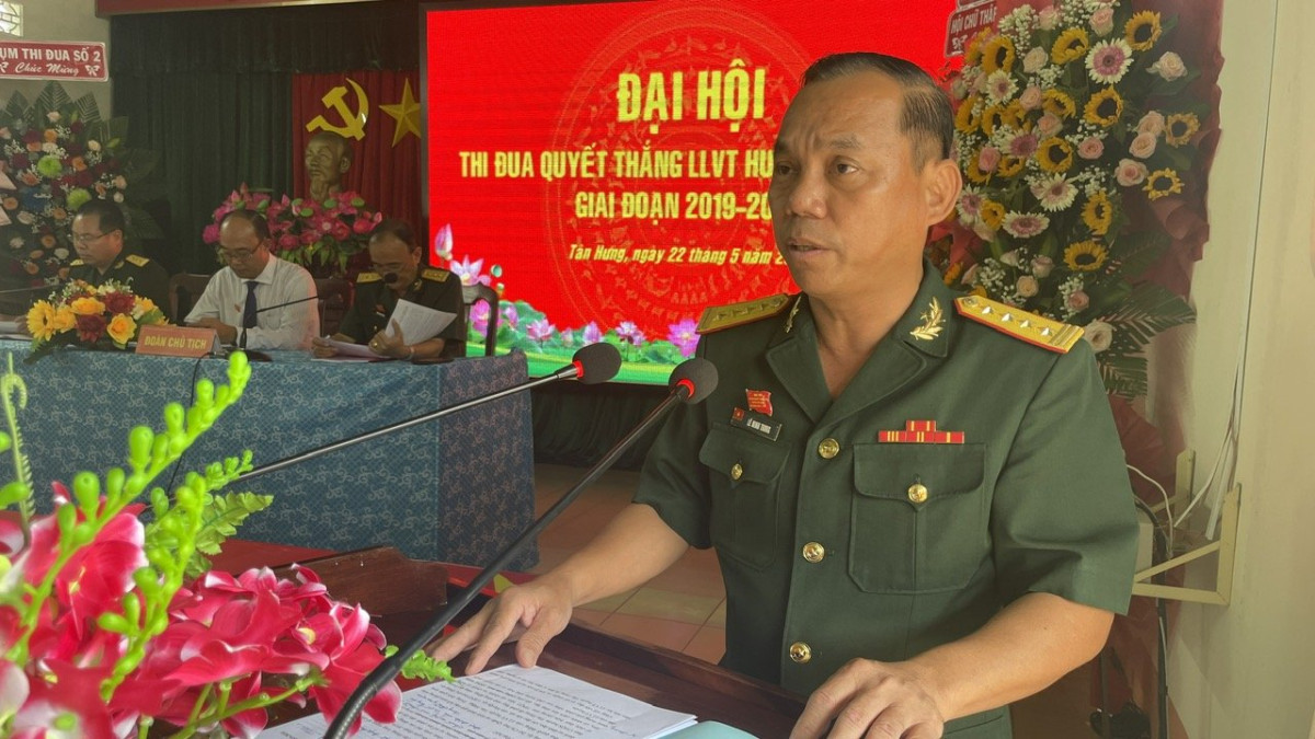 Ngày 22/5, Lực lượng vũ trang (LLVT) huyện Tân Hưng, tỉnh Long An tổ chức Đại hội thi đua Quyết thắng giai đoạn 2019 - 2024. Đại tá Lê Minh Trung - Chính ủy Bộ Chỉ huy Quân sự tỉnh; Bí thư Huyện ủy Tân Hưng - Nguyễn Thanh Tiệp đến dự.