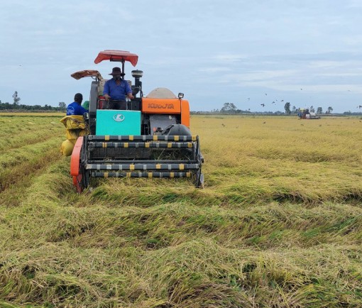 Tân Hưng: Thu hoạch lúa Đông Xuân cuối vụ đạt năng suất cao