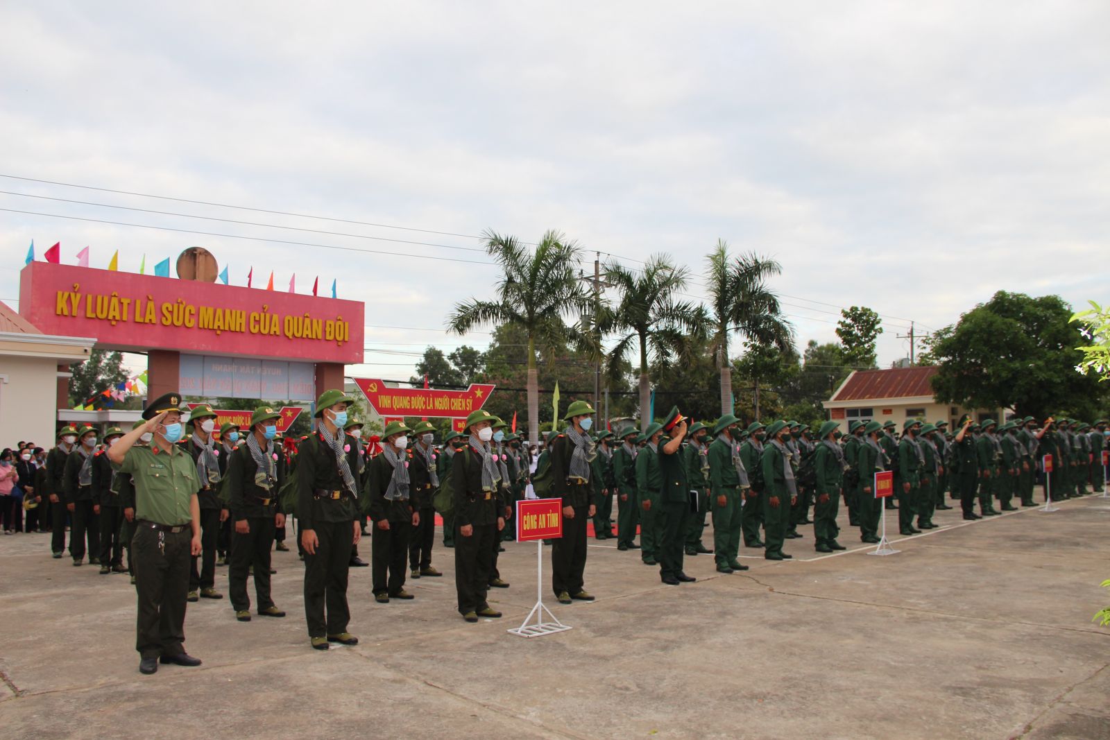 Phát biểu tại buổi lễ, Chủ tịch UBND huyện, Chủ tịch Hội đồng Nghĩa vụ Quân sự huyện - Lê Thanh Đông ghi nhận và biểu dương tinh thần, trách nhiệm của các tân binh, thân nhân gia đình và các xã, thị trấn trong công tác tuyển chọn và gọi công dân nhập ngũ năm 2022.