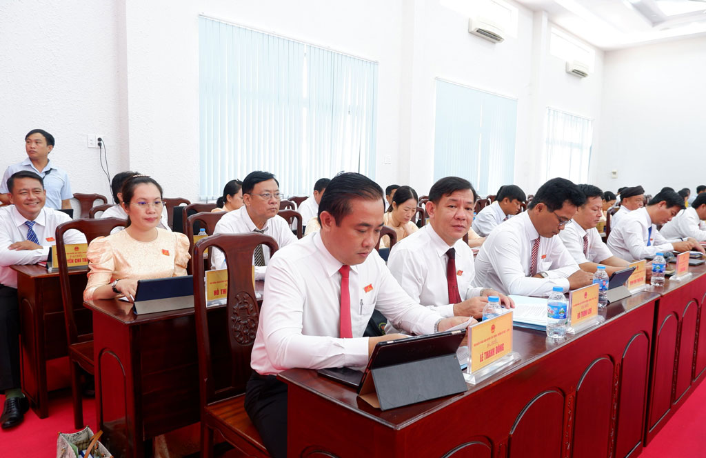 Bí thư Huyện ủy, Chủ tịch HĐND huyện Tân Thạnh - Bùi Quốc Bảo (bên trái) chủ trì kỳ họp.jpg)