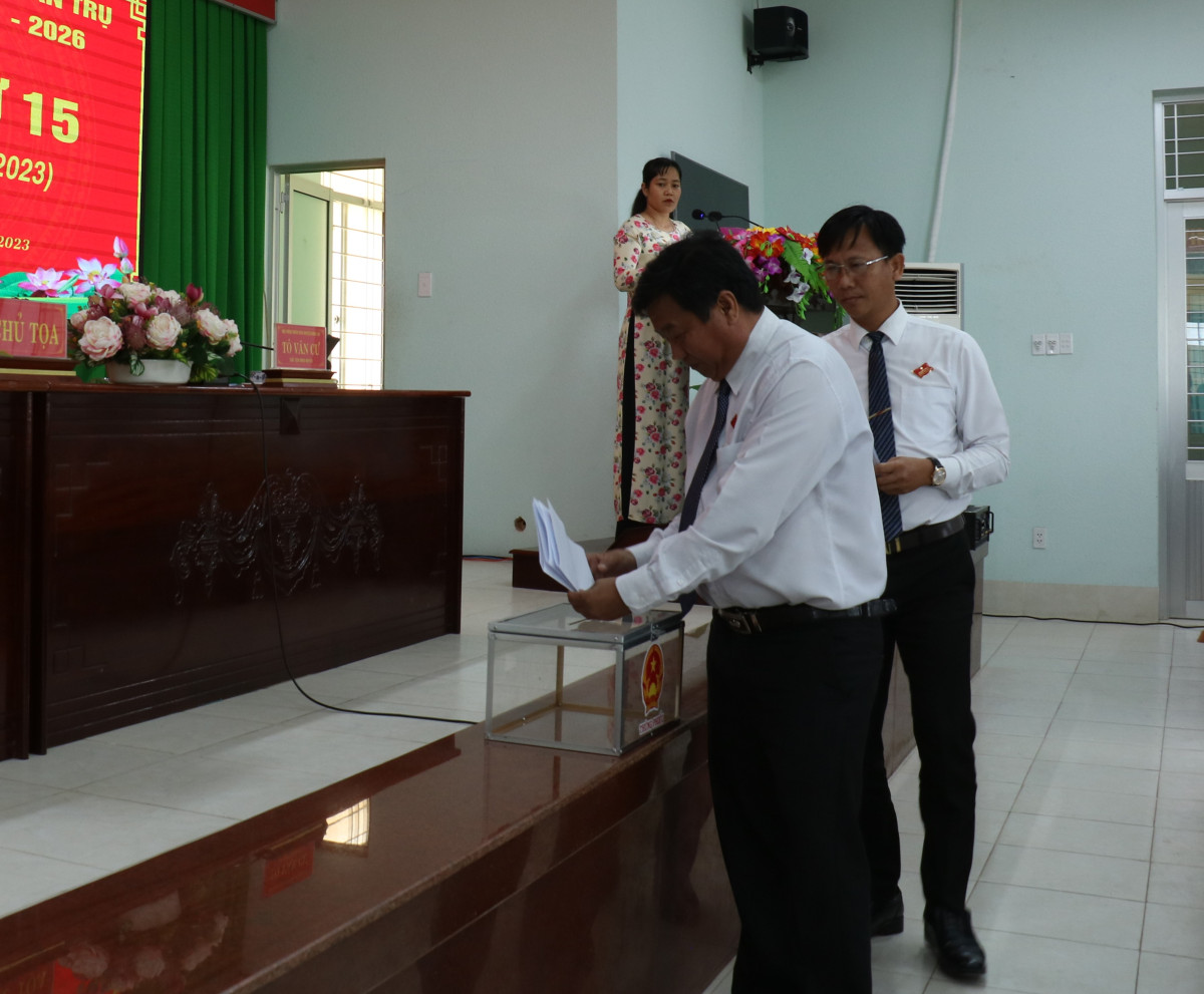 Trong chương trình kỳ họp thứ 15 - ngày làm việc thứ nhất, chiều 07/12, HĐND huyện Tân Trụ, tỉnh Long An khóa XII, nhiệm kỳ 2021-2026 thực hiện lấy phiếu tín nhiệm đối với người giữ chức vụ do HĐND huyện bầu theo quy định.