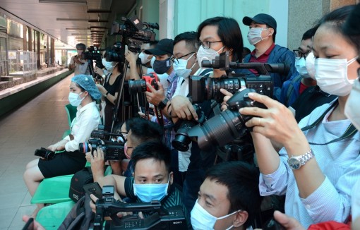 Các phóng viên là những chiến sỹ tuyến đầu trong cuộc chiến chống “đại dịch thông tin.” (Ảnh: Quốc Dũng/TTXVN)