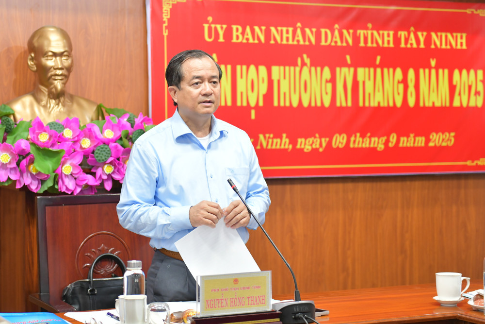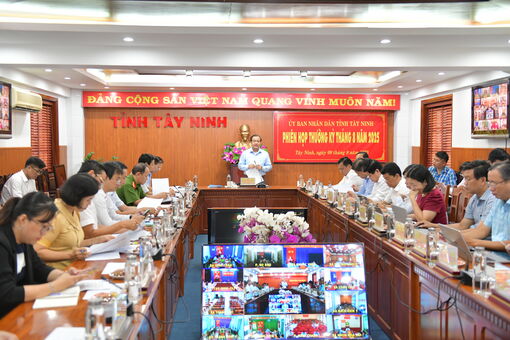 Sáng 09/9, UBND tỉnh Tây Ninh tổ chức phiên họp thường kỳ tháng 8/2025 để đánh giá tình hình phát triển kinh tế - xã hội, thu chi ngân sách nhà nước, tiến độ giải ngân vốn đầu tư công tháng 8/2025 và triển khai phương hướng, nhiệm vụ tháng 9/2025.