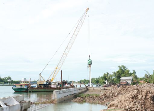 Huyện Tân Trụ tập trung đồng bộ, quyết liệt để đẩy nhanh tiến độ dự án cũng như giải ngân vốn đầu tư công trên địa bàn (trong ảnh: Công nhân thi công công trình trọng điểm nâng cấp, mở rộng đê bao sông Vàm Cỏ Tây (đoạn từ cống Bần đến đường Thanh Phong))