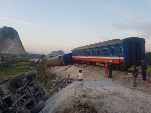 Thông tin từ UBND huyện Tĩnh Gia (Thanh Hóa) lại cho là sau cú đâm mạnh của tàu hỏa làm chiếc xe tải bị hất văng, lật nghiêng xuống bên đường; 8 toa tàu hỏa lật xuống ruộng.