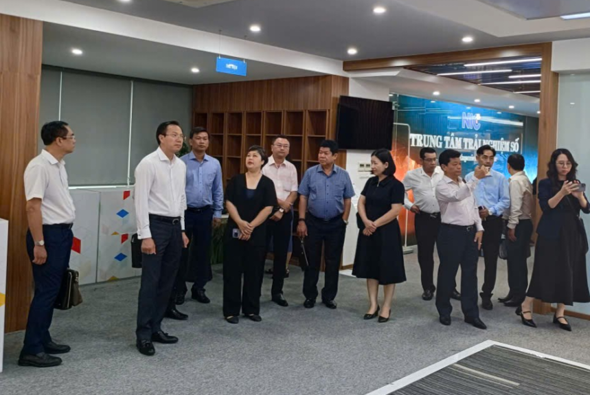 Lãnh đạo tỉnh Tây Ninh tham quan các khu chức năng của Trung tâm Đổi mới sáng tạo Quốc gia (Ảnh: M.H)