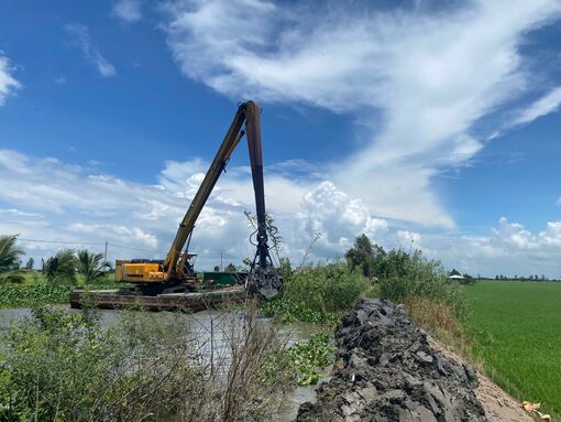 - Xã Bình Thành: Lực lượng dân quân tiếp tục hỗ trợ Nhân dân gia cố đê bao ngăn lũ