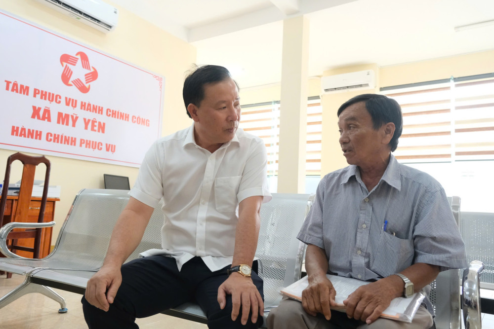 Phó Bí thư Tỉnh ủy, Chủ tịch UBND tỉnh Nguyễn Văn Út gặp gỡ người dân đến xã Mỹ Yên giải quyết thủ tục hành chính