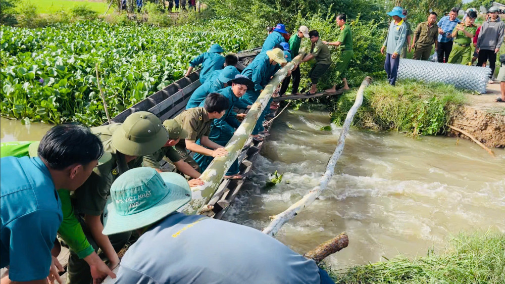 - Bộ Chỉ huy Quân sự tỉnh Tây Ninh khẩn trương giúp người dân khắc phục sự cố vỡ đê