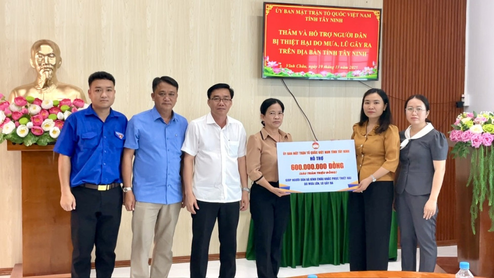 Ngày 19/11, Phó Chủ tịch UBMTTQ Việt Nam tỉnh Lê Thị Cẩm Tú đến thăm và hỗ trợ người dân bị thiệt hại nặng do mưa, lũ gây ra trên địa bàn xã Vĩnh Châu, tỉnh Tây Ninh.