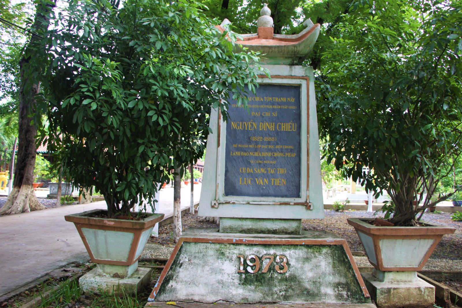 Bia tưởng niệm nhà thơ Nguyễn Đình Chiểu được Nha Văn hóa Phủ quốc vụ khanh đặc trách văn hóa của chính quyền Sài Gòn xây dựng năm 1973