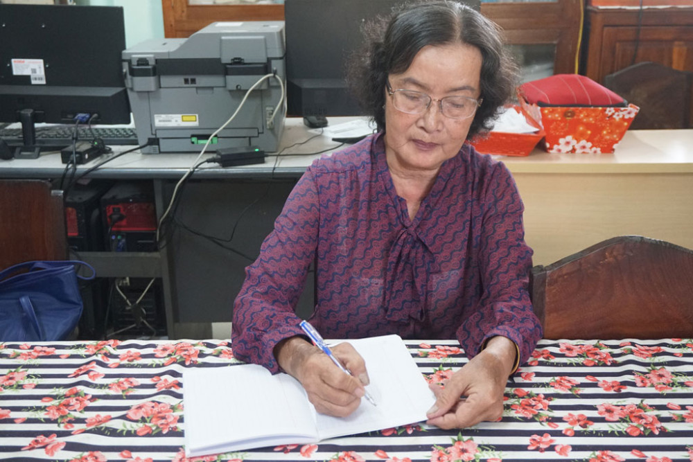 Cô Lê Thị Vân (SN 1957, ngụ thị trấn Thủ Thừa, huyện Thủ Thừa) chuẩn bị sổ sách cho mùa tựu trường