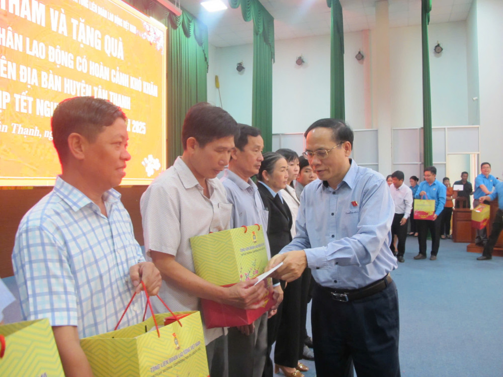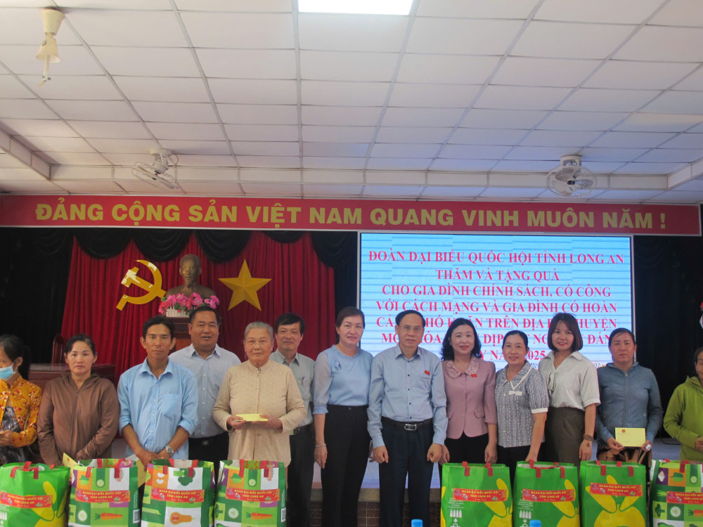 Chiều 11/01, Đoàn đại biểu Quốc hội tỉnh Long An phối hợp Liên đoàn Lao động tỉnh thăm hỏi, tặng quà cho gia đình chính sách, người có công với cách mạng, gia đình có hoàn cảnh khó khăn tại huyện Mộc Hoá và công nhân, lao động có hoàn cảnh khó khăn trên địa bàn huyện Tân Thạnh, huyện Thạnh Hóa nhân dịp Tết Nguyên đán Ất Tỵ năm 2025.