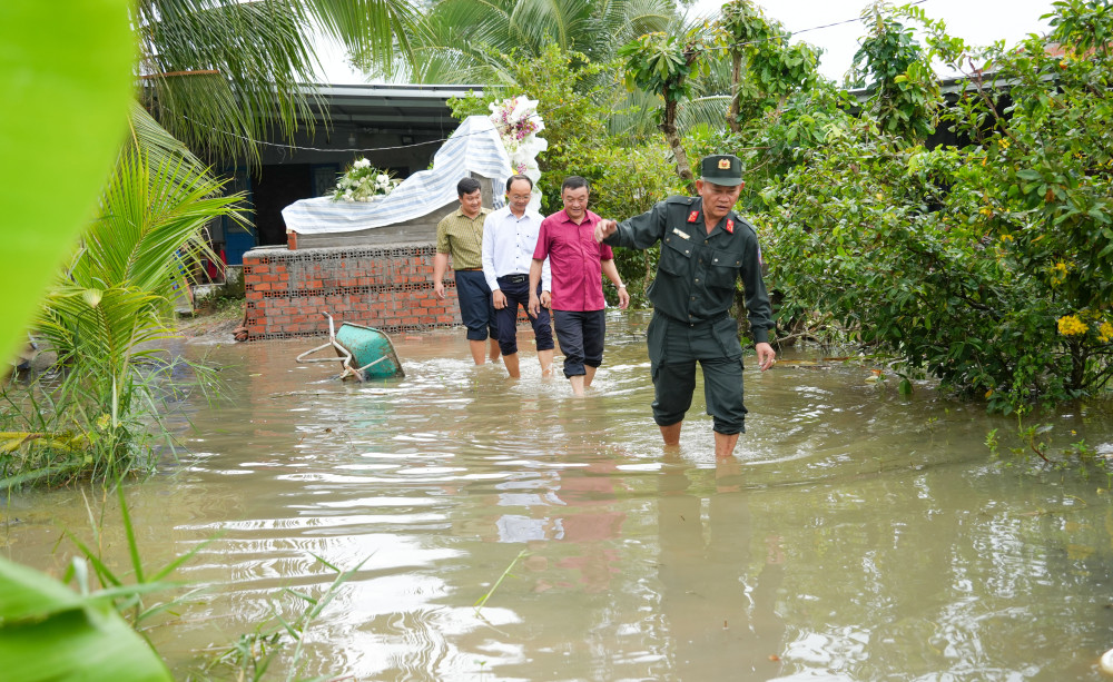 - Lãnh đạo xã Bến Lức khảo sát, chỉ đạo khắc phục nước tràn đê do ảnh hưởng triều cường