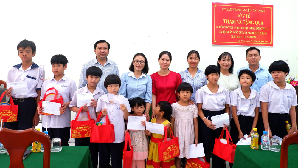 Sáng 01/10, Đoàn công tác Sở Y tế thăm, tặng quà người cao tuổi và trẻ em tại Trung tâm Công tác xã hội tỉnh Tây Ninh nhân Ngày Quốc tế Người cao tuổi và Tết Trung thu năm 2025.
